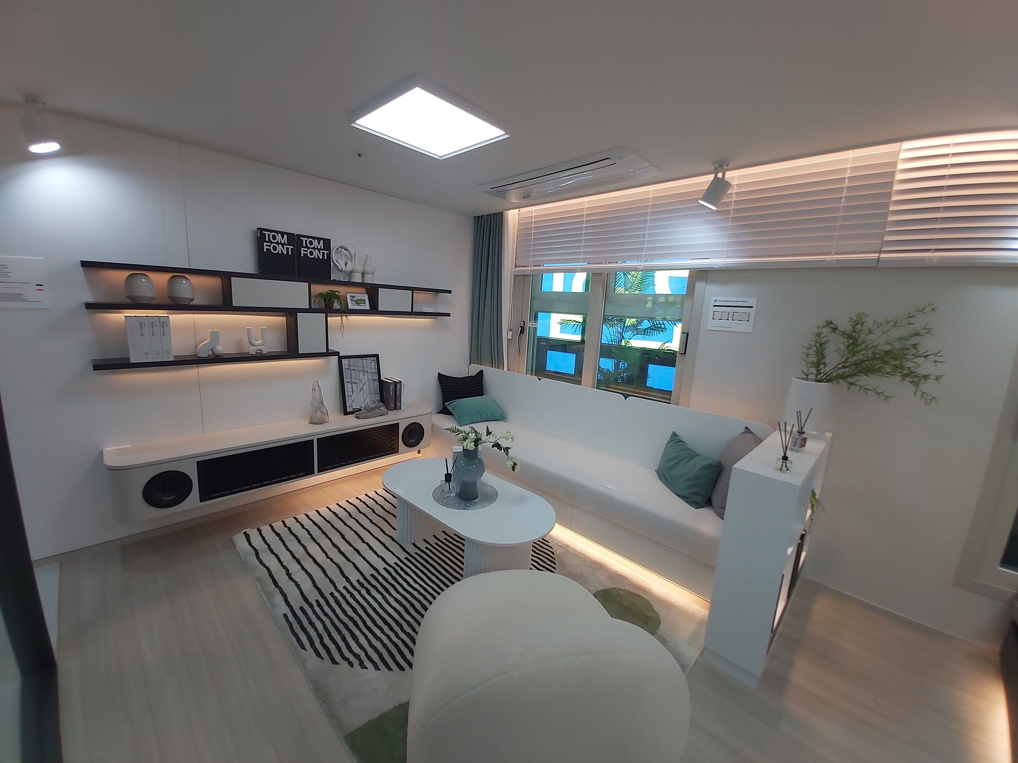 거실은 깔끔한 확장형으로 집에 들어서는 순간 마치 거실이 두 개가 있는 느낌으로 매우 모던함을 선사하여 눈을 즐겁게 하고 있습니다^^