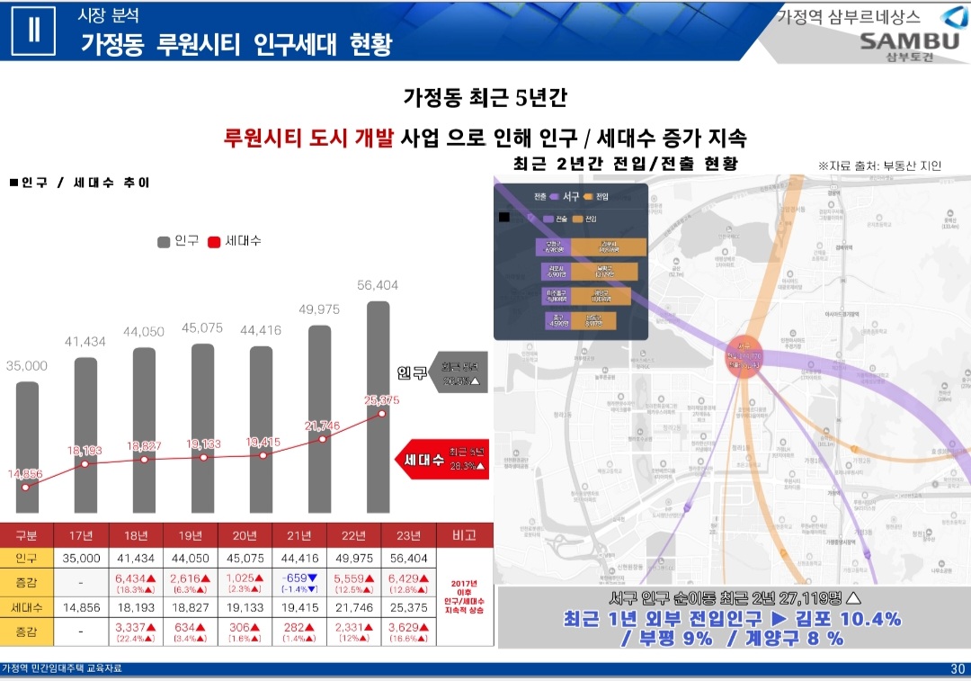 다른 도시는 인구가 줄고 있지만 루원시티는 사통팔달의 교통망으로(2호선, 7호선, gtx, 청라 GRT, BRT 버스, 버스노선 20여 개, 서인천 IC 등)인한 유동 인구만도 상당할 수준이며 인구도 최근 5년 사이 26.5%가 늘어 56.404만 수준에 이르는 거대 도시가 되어 가고 있습니다.